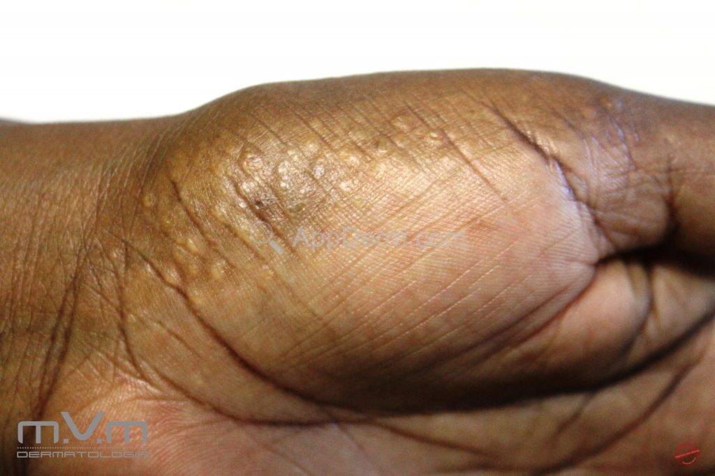 Acroqueratoelastoidose (doença de Oswaldo Costa)Trata-se de uma queratodermia palmoplantar de herança autossômica dominante.AppDerm®