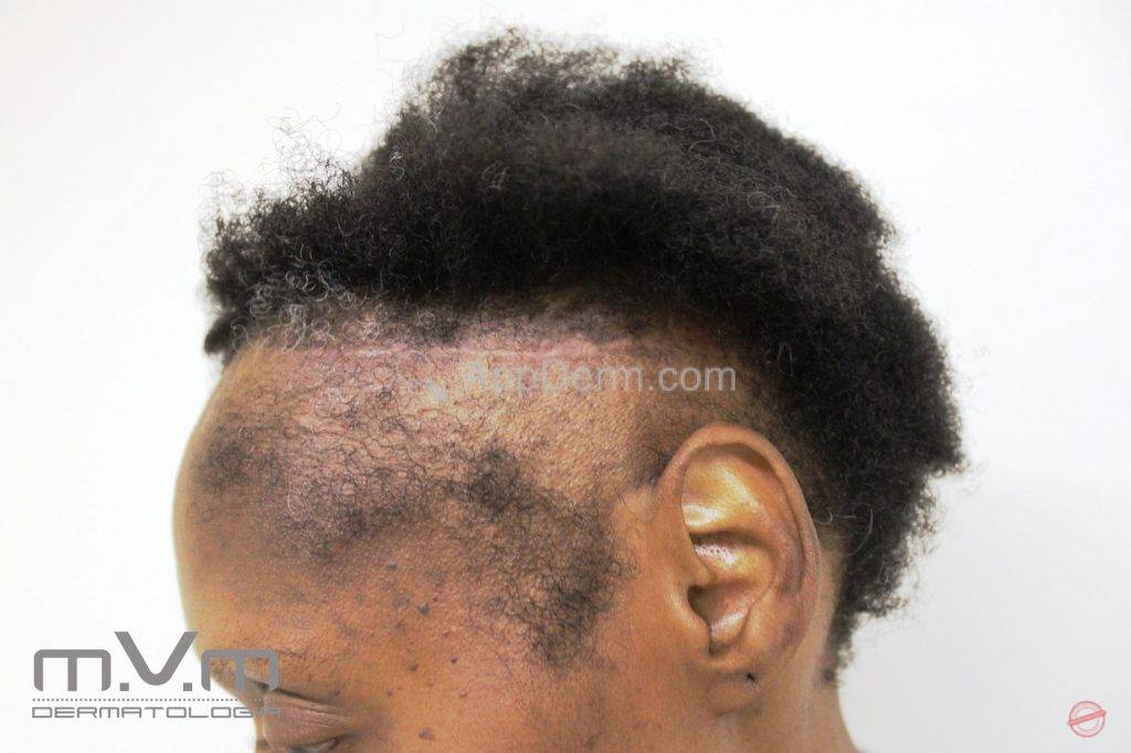 O ato de pentear e amarrar o cabelo estão atribuídos como causa.O uso de alisantes químicos e físicos aumentam o risco de alopecia.AppDerm®