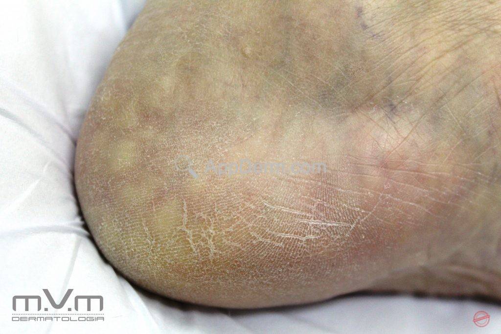 Ocorre uma herniação da gordura através do tecido conjuntivo, na pele dos calcanhares.Síndromes associadas: síndrome de Ehlers-Danlos e síndrome de Prader-Willi.AppDerm®
