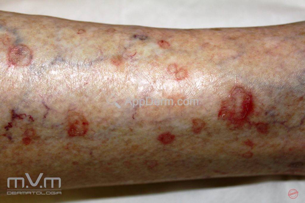 Poroqueratose refere-se ao padrão clínico que encontramos na pele, onde visualizamos lesões circundadas por uma barreira de queratina com o centro atrófico.Fatores associados: herança genética, radiação ultravioleta e imunossupressão causada por AIDS ou por transplantes de órgãos.AppDerm®