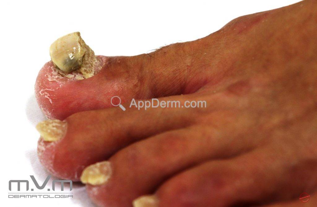 São unhas espessadas e curvas, que devido o crescimento assumem um aspecto grosseiro. Os hálux são os mais acometidos.AppDerm®