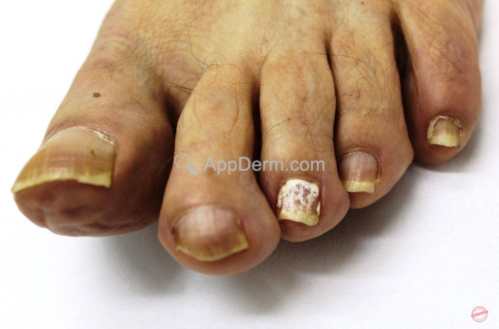 Onicomicose é o termo utilizado para infecções ungueais cusadas por fungos, doença infecto-contagiosa.AppDerm®