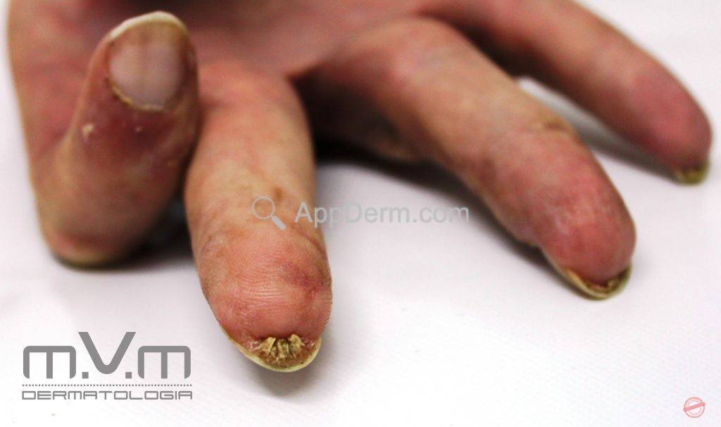 Unhas – pterígio inversoÉ o crescimento da pele na região do hiponíquio que adere na superfície ventral da lâmina ungueal.