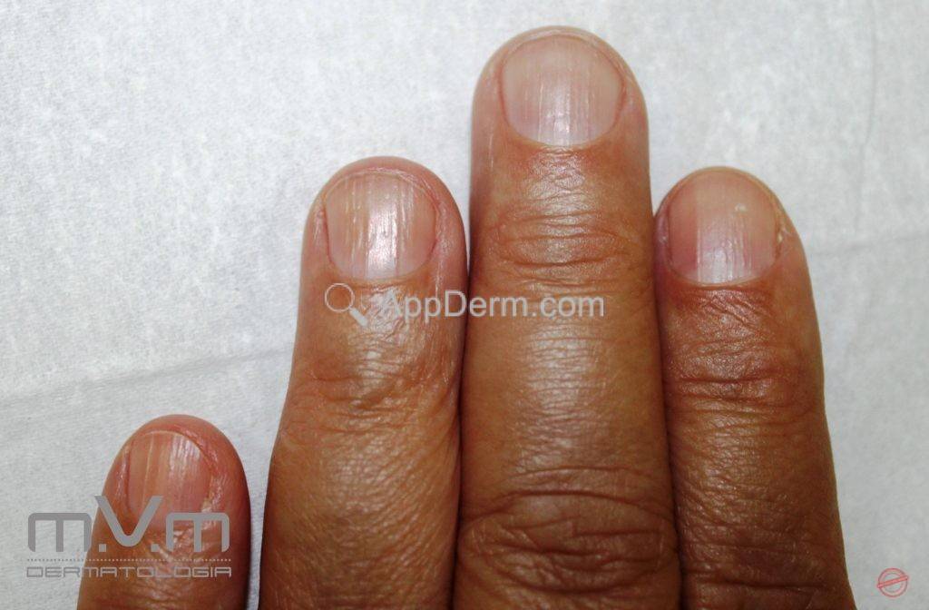 Unhas – sulcos longitudinaisSão múltiplas fissuras na lâmina ungueal, longitudinais e pouco profundas.
