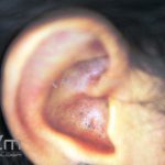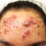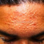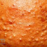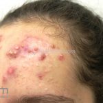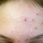 Acne cosmética: presença de comedões em região frontal após o uso de cosméticos.