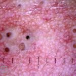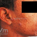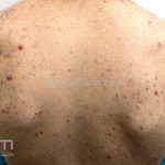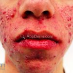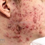 Acne papulopustulosa: presença de comedões abertos e fechados, pápulas inflamatórias e pústulas.