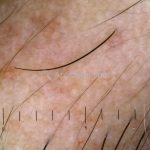 As lesões parecem não ter pelos, mas pelos velus podem ser vistos na tricoscopia.