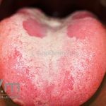 Glossite romboide mediana (atrofia papilar central da língua): caracterizada por placas eritematosas lisas, bem delimitadas, com forma romboide e atrofia das papilas na parte mediana do dorso da língua. Pode representar um sinal de infecção por HIV ou outras causas de imunossupressão.