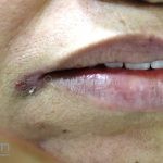 Queilite angular (perleche): lesões fissuradas com descamação branca nos ângulos da boca. É frequente a infecção bacteriana secundária. Alta incidência em recém-nascidos e idosos, e associa-se ao uso de prótese dentária, babar, dermatite atópica, deficiência de ferro e vitaminas.