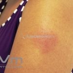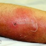 Presença de eritema mal delimitado, edema e dor local, lesões graves podem apresentar bolhas, pústulas e áreas necróticas.