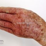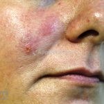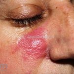 Histopatológico: encontramos um infiltrado inflamatório leve a moderado constituído por linfócitos e neutrófilos na derme e hipoderme.