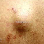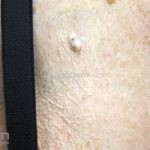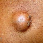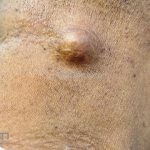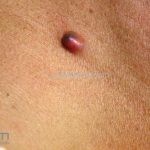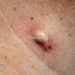 O cisto é um nódulo dérmico bem delimitado, normocrômico, de consistência macia e possui um orifício em sua superfície, este orifício representa o folículo que originou a lesão.