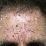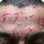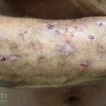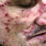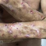 Na pele, os achados podem ser nenhum ou escoriações, liquenificação, prurido nodular e/ ou escoriações francas.