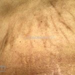 Surgem manchas hipercrômicas com formatos lineares, atribuídas ao ato de coçar.