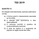 Sorologia: FAN (pode ser negativo); anti-JO1 (sd. antissintetase); anti-Mi2 (forma juvenil, bom prognóstico); anti-SRP (miopatia necrosante do adulto); anti-p155/140 (miosite associada a malignidade, grave); anti-p 140 (forma juvenil com calcinose).