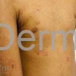 Foi relatado fenômeno de Köebner, incluindo lesões que aparecem em locais anteriores da fita adesiva.