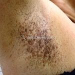 Inicia entre os 30 e 40 anos de idade com manchas hipercrômicas agrupadas de maneira reticulada em flexuras.