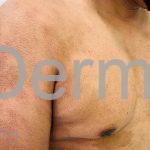Histopatológico: as principais alteração estão na porção infundibular do folículo piloso. Há edema perifolicular, leve infiltrado de linfócitos com raros neutrófilos.