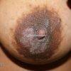 É uma placa eritematosa com descamação, exulceração e secreção sero-sanguinolenta na aréola e/ou mamilo. A lesão pode sofrer pigmentação.