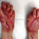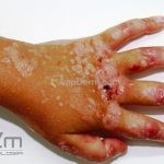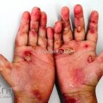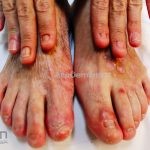 Epidermólises bolhosas simples: presença de bolhas rotas e íntegras, principalmente em áreas de traumas (mãos e pés), há leve acometimento oral e não provocam repercussões sistêmicas.