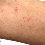 Na pele, encontramos múltiplas micropápulas eritematosas com pequenas crostículas em sua superfície, eventualmente, podem apresentar vesículas e túneis.
