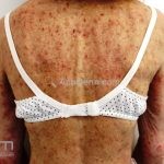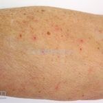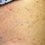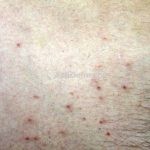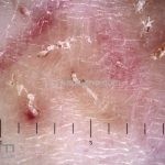 Histopatológico: ocorre um infiltrado difuso na derme reticular contendo eosinófilos, linfócitos e histiócitos. No corte transverso, o ácaro eventualmente é encontrado na epiderme.