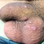 A escabiose nodular ocorre em bolsa escrotal de lactentes e pacientes jovens.