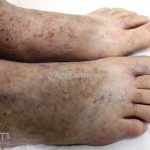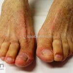 São pequenas pápulas branco-acinzentadas com 1 a 4mm de diâmetro, presentes tipicamente nas extremidades inferiores.