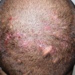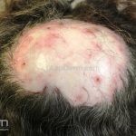 Histopatológico: as pústulas apresentam inflamação folicular intensa mediada por neutrófilos com destruição epitelial. Granulomas podem ser evidentes. Nas áreas não inflamadas, encontramos cicatrizes foliculares e descamação prematura da bainha radicular interna.