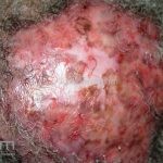 Foliculite crônica, cuja a fisiopatologia envolve a participação de agentes infecciosos, principalmente, o Staphylococcus aureus.