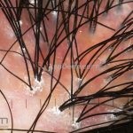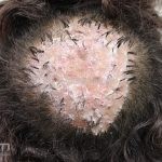A doença inicia com pápulas eritematosas e pústulas foliculares em vértex e região occipital, após, surgem áreas de alopecia cicatricial com presença de tufos capilares (politriquia) na periferia da lesão. O prurido costuma ser intenso.