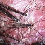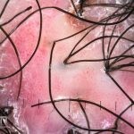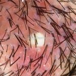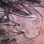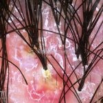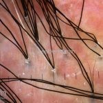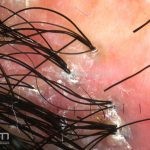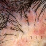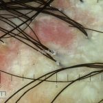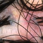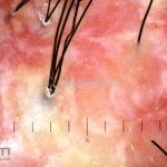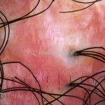 Dermatoscopia: podemos encontrar tufos capilares, pústulas foliculares, vasos torcidos e puntiformes e estrias brancas (correspondem a bandas de colágeno).