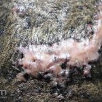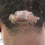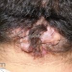 Excisão e sutura primária (para placas < 1,5cm de diâmetro vertical), aplicar imiquimode tópico, no pós operatório imediato, diariamente por 6 semanas ou em dias alternados por 8 semanas. Exérese cirúrgica e fechamento por segunda intenção (para placas > 1,5cm de diâmetro vertical), não injetar corticoides nestes casos.