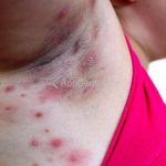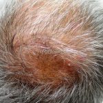 Histopatológico: ocorre um infiltrado folicular de linfócitos, neutrófilos e macrófagos de intensidade moderada, com neutrófilos se estendendo pelo epitélio folicular tendendo a formar abscessos. Nos estágios finais, pode haver ruptura folicular e reação granulomatosa.