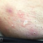 Se as pústulas não estão presentes, pápulas eritematosas foliculares ou a presença de um colarete de descamação podem ajudar no diagnóstico.