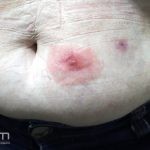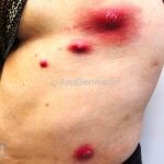 Os locais de maior acometimento são o rosto, axilas, pescoço, nádegas, coxas e períneo.