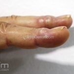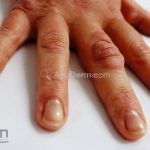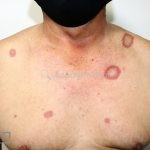 Forma localizada: as lesões são papulonodulares cor da pele ou levemente eritematosas, com 1-3mm de diâmetro, ao coalescer, as lesões assumem o formato anular característico da doença. As lesões crescem de maneira centrífuga e podem apresentar discromias residuais. Os locais mais acometidos são o dorso das mãos, dos dedos, e dos pés, além das superfícies extensoras dos membros.