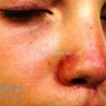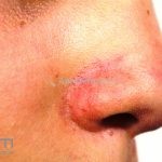 A doença se manifesta na infância e tende a melhorar após a puberdade. São manchas e pápulas eritematosas, no dorso nasal, acompanhadas de hiperidrose local.