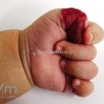 A lesão precursora pode estar presente ao nascimento ou surgir nos primeiros dias de vida, podendo se manifestar através de telangiectasias ou uma mancha eritematosa ou violácea.