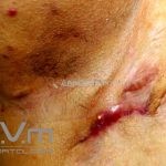 Intervenção cirúrgica (excisão da área e cicatrização por segunda intenção).