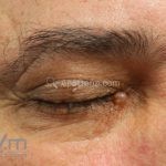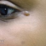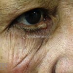 Hidrocistomas se apresentam como um cisto cor da pele ao azulado na face, embora possam ocorrer em outros locais.