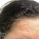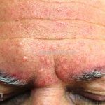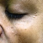 São pápulas amareladas de 2 a 4 mm de diâmetro, umbilicadas, únicas ou múltiplas, localizadas em região frontal, temporal, malares e dorso nasal.