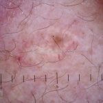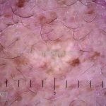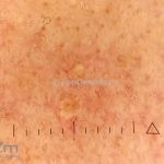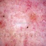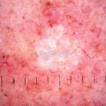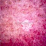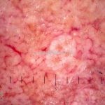 Dermatoscopia: padrão vascular tipo “vasos em coroa”.