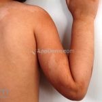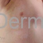 Histopatológico: quantidade reduzida de melanócitos e melanina na camada basal.