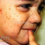 As lesões caracterizam-se por máculas e pápulas de coloração avermelhada a amarronzada de 2 a 5 mm, inicialmente em face, porém podem acometer orelhas, pescoço, tronco, nádegas e coxas. Com o passar de meses ou anos, as lesões tornam-se achatadas, planas e levemente pigmentadas, até a regressão completa do quadro.