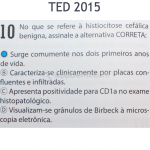 Microscopia eletrônica: corpúsculos em forma de vírgula, partículas vermiformes e junções semelhantes a desmossomos entre os histiócitos.