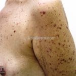 O quadro clínico é semelhante com a forma disseminada aguda-subaguda. As lesões cutâneas são variadas, desde lesões papuloacneiformes até lesões ulceronecróticas múltiplas.