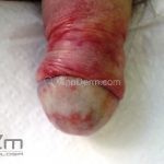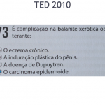 A inflamação tende a evoluir para uma cicatriz esclerótica, esbranquiçada e atrófica. Os pacientes podem apresentar dor à ereção, disúria, obstrução urinária, fimose e parafimose.