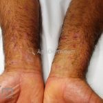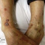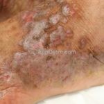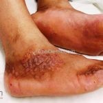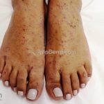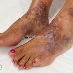Líquen plano hipertrófico: também chamado de líquen plano verrucoso, é caracterizado por placas grossas hiperqueratóticas, extremamente pruriginosas, vistas em dorso dos pés e regiões pré-tibiais. As lesões costumam ser simétricas e tendem à cronicidade. Há relatos de evolução para carcinoma espinocelular.