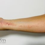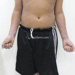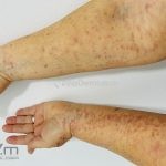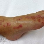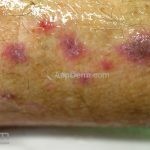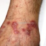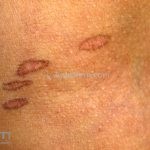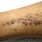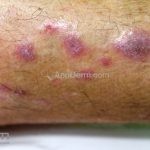 Podemos encontrar lesões papulosas típicas ou extensas lesões eritematosas com margens mal definidas, erosadas ou liquenificadas.